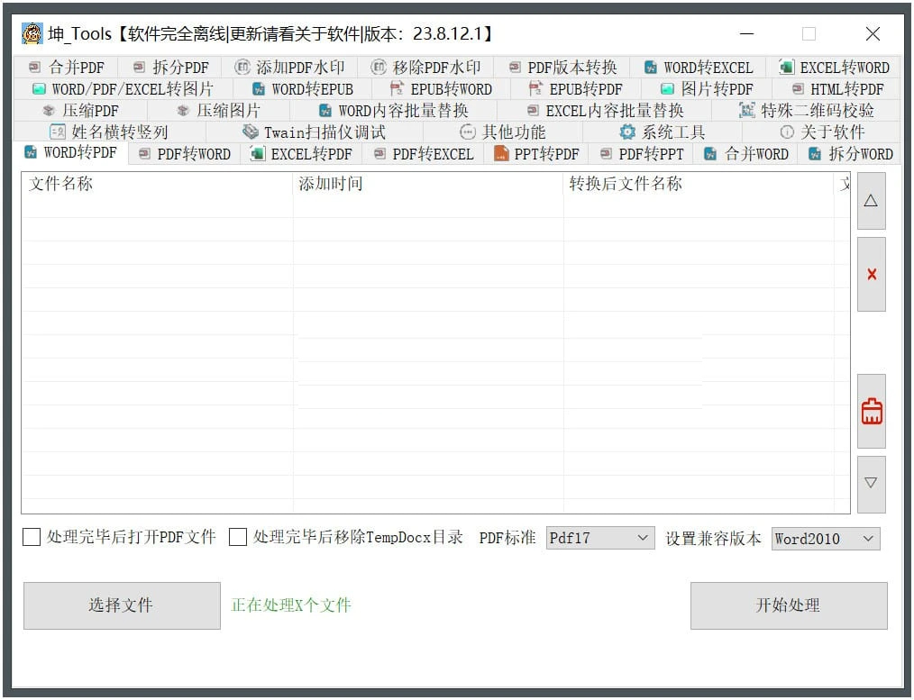 坤_Tools是一款功能強大的文檔編輯工具,它提供了多種實用的功能,包括Word轉PDF、PDF轉Word、替換內容、轉換圖片、合并圖等等。這個工具的設計目的是通過一個軟件解決多個場景的問題。這個軟件完全離線使用,并且完全免費。