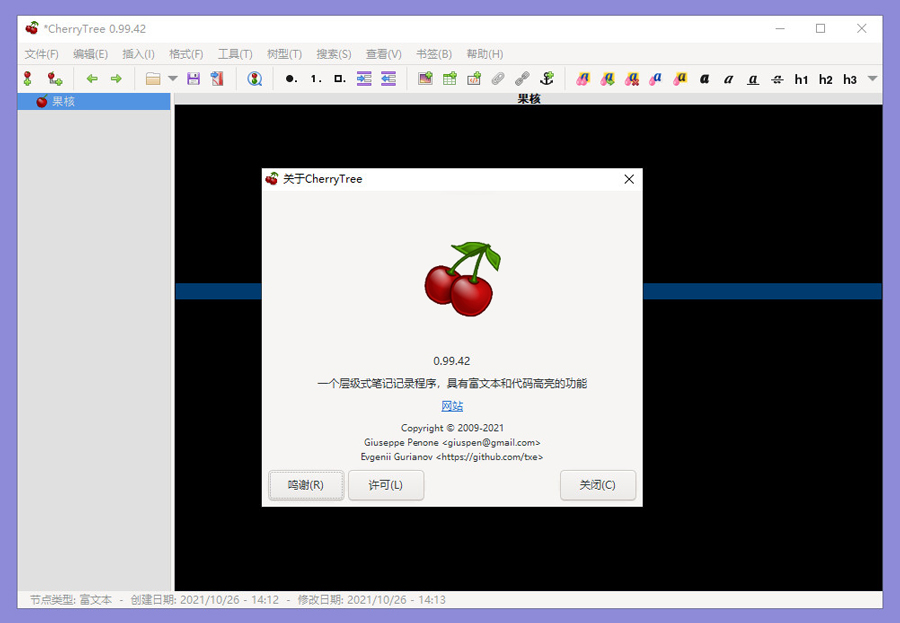 CherryTree是一個支持無限層級分類的筆記軟件,Python編寫,支持富文本編輯和代碼高亮,支持Mac、Linux、Windows平臺。