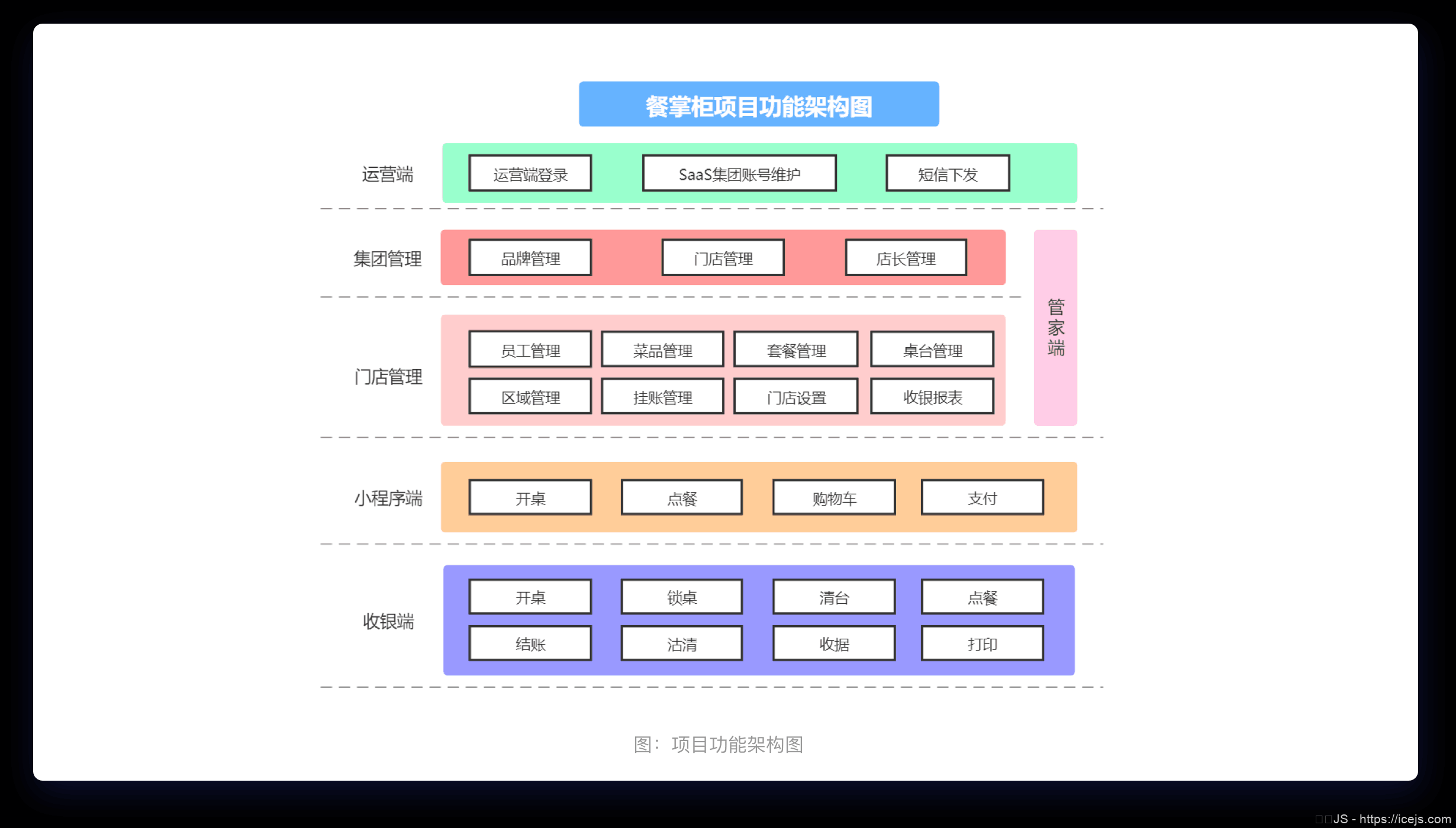 餐掌柜是一款基于SaaS思想打造的餐飲系統(tǒng),采用分布式系統(tǒng)架構(gòu)進(jìn)行多服務(wù)研發(fā),共包含4個(gè)子系統(tǒng),分別為平臺(tái)運(yùn)營(yíng)端、管家端(門店)、收銀端、小程序端,為餐飲商家打造一站式餐飲服務(wù)解決方案。
