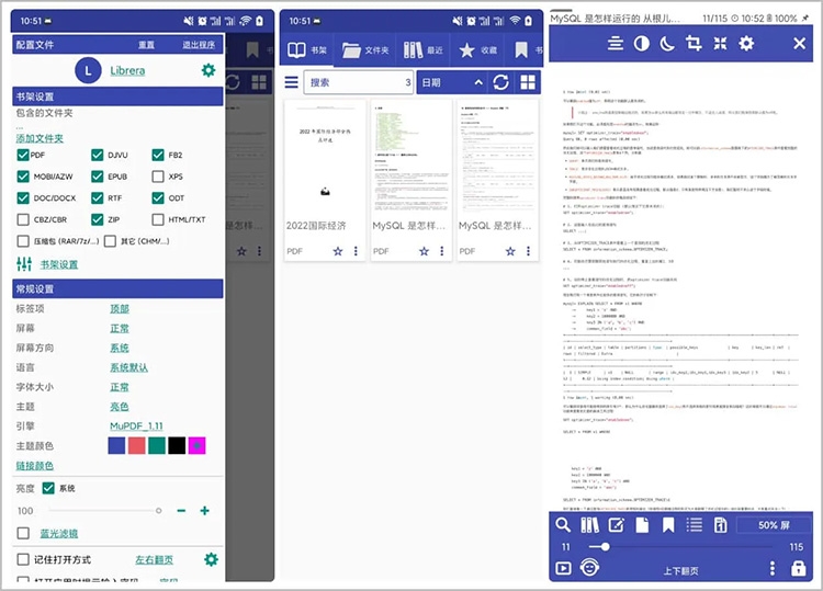 Librera Reader(又名Lirbi Reader,PDF Reader)是一款適用于Android設備的電子書閱讀器; 它支持以下格式:PDF,EPUB,EPUB3,MOBI,DjVu,FB2,TXT,RTF,AZW,AZW3,HTML,CBZ,CBR,DOC,DOCX和OPDS。