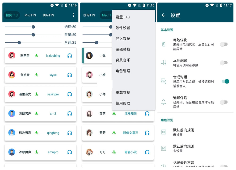 角色管理:添加規(guī)則,識(shí)別朗讀文本中的角色,并用指定的發(fā)音人進(jìn)行朗讀。