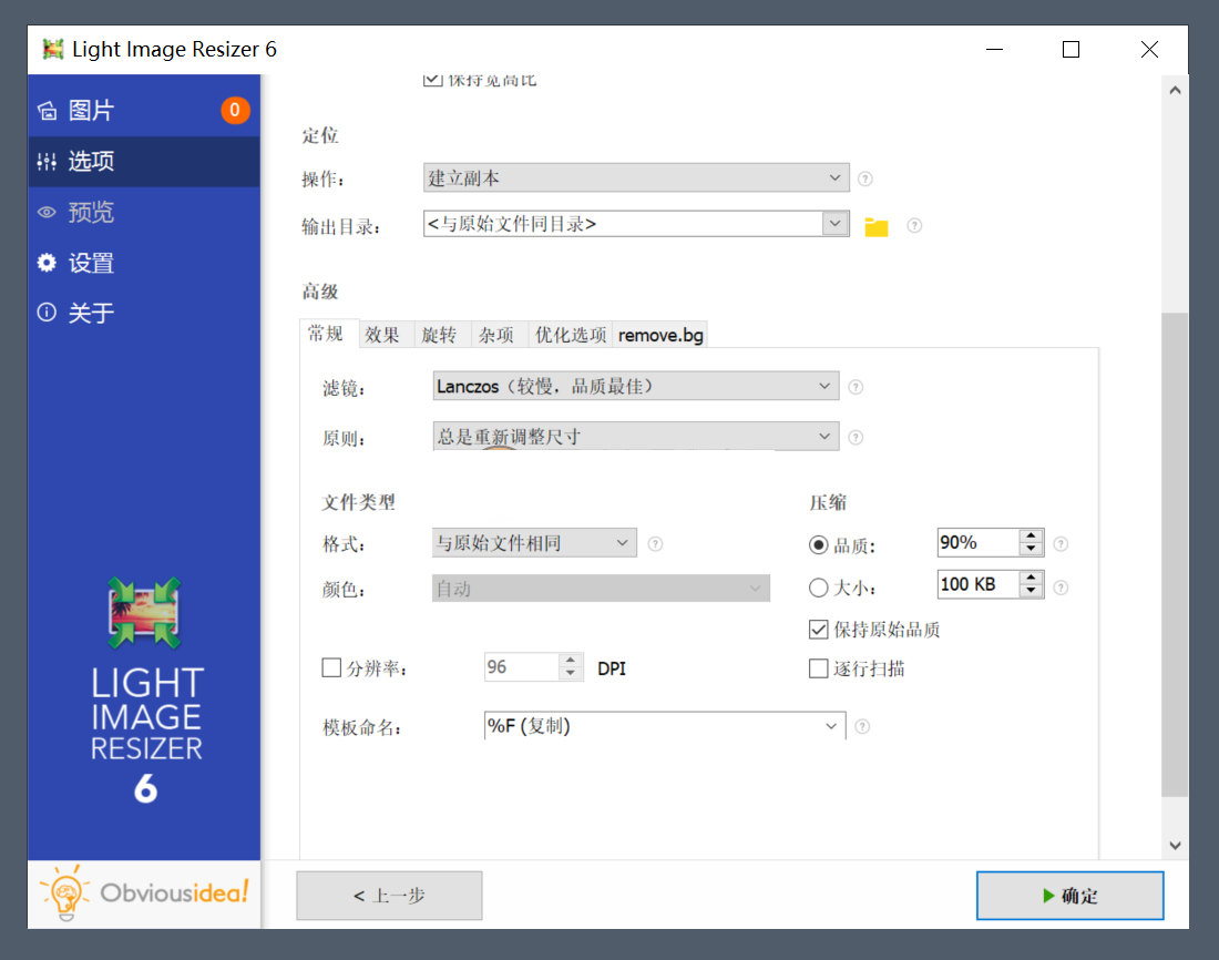 Light Image Resizer是將數碼照片和圖像存在電腦中,并希望重新調整圖片大小,壓縮,轉換,創建備份,導入或組織圖片的人們設計的完美工具。Light Image Resizer 專業的圖像縮放軟件,可從固定寬高比像素與質量等預設值調增圖像,支持模版批量處理功能。